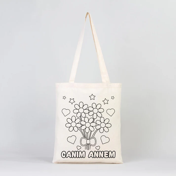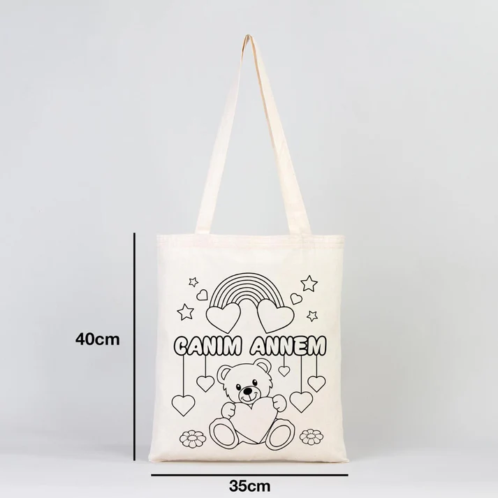 Anneler Günü Boyama Set 1- 25 Adet AYICIK ÇİÇEK Boyanabilir Çanta / 2 Adet Carioca Kumaş Kalem