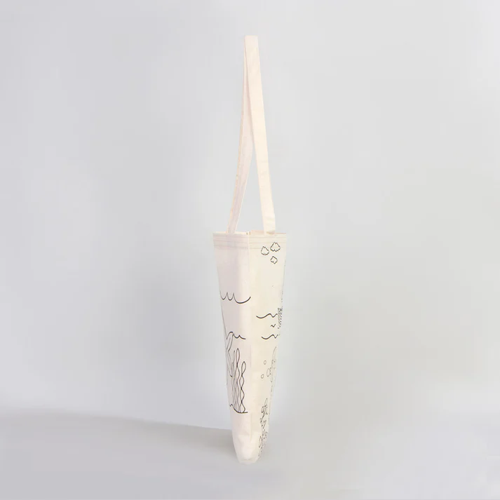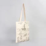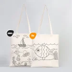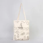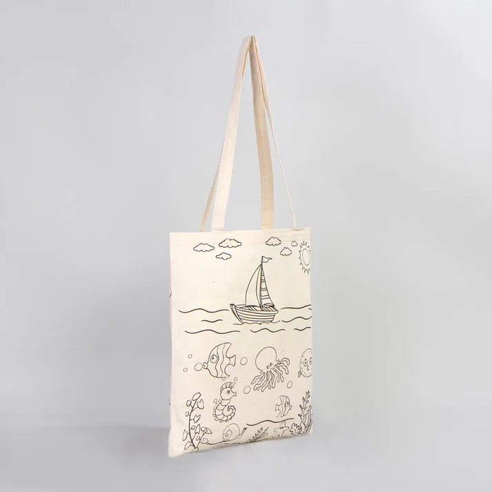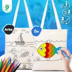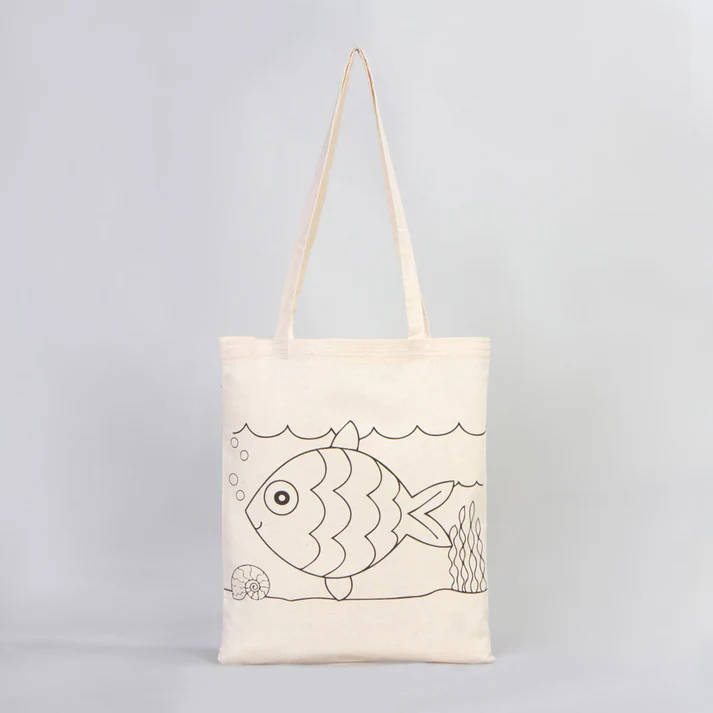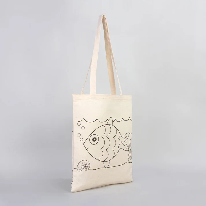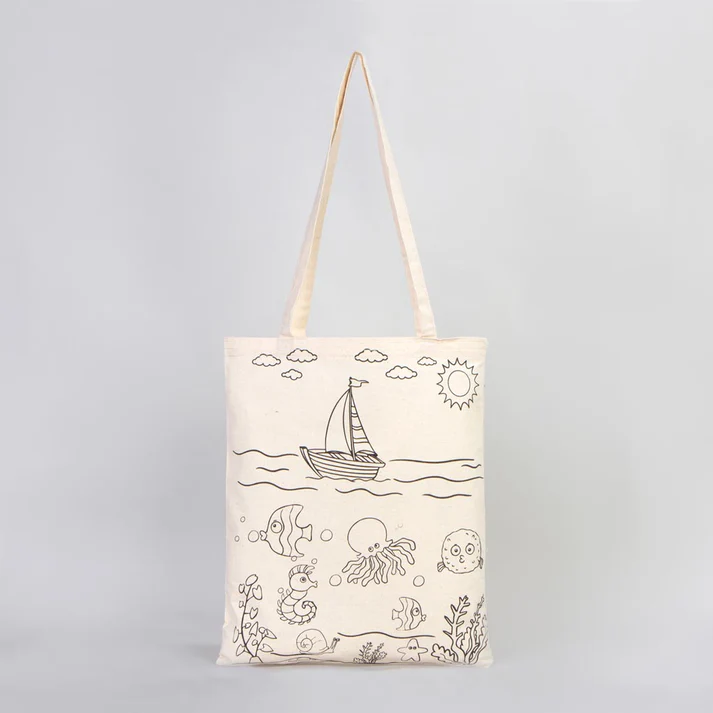 • Balık Ve Kayık Çizimi Baskılı Boyamaya Uygun Bez Çanta