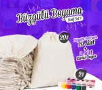 Büzgülü Sınıf Boyama Set 1 – 20 Adet Ham Bez Büzgülü Sırt Çantası / 2 Adet Red Apple 6’lı Kumaş Boyası Seti