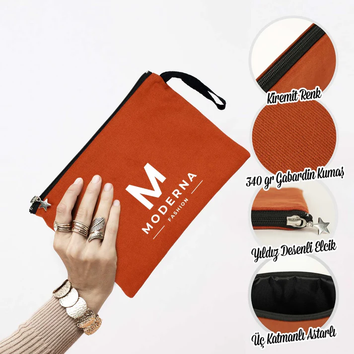 • Clutch çanta iç kısmında astar bulunmaktadır. 3 kademeli içerik siyah su geçirmez katman, sünger ve tela bulunmaktadır.