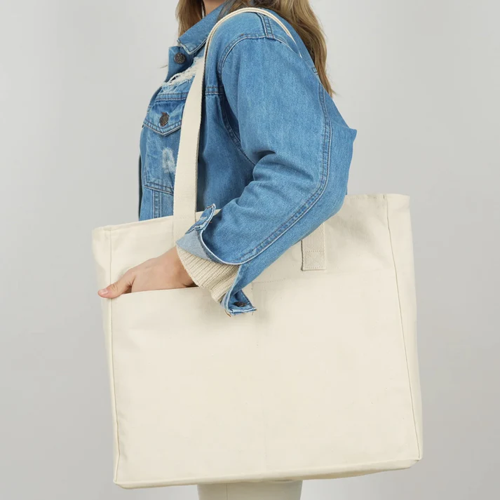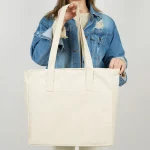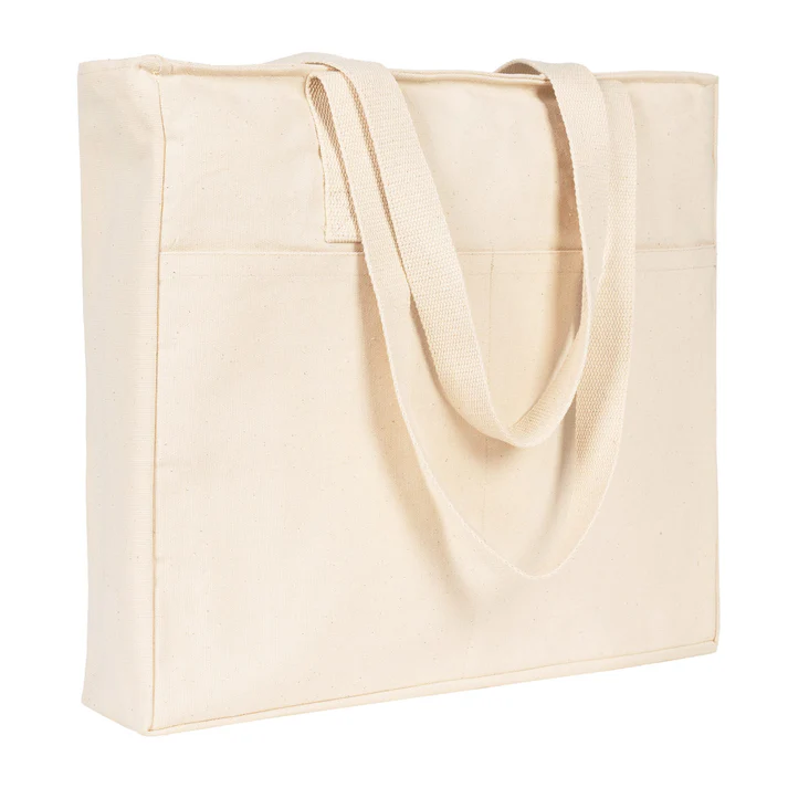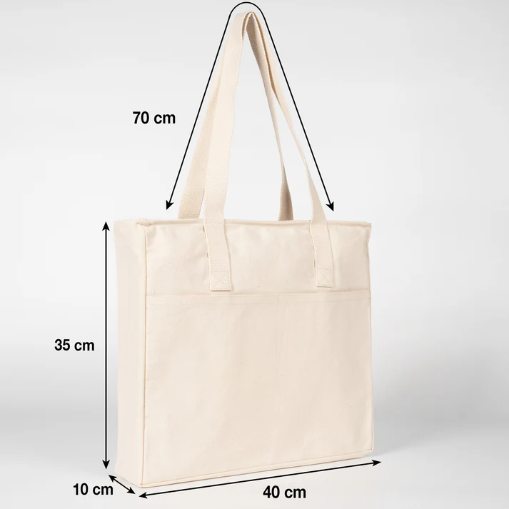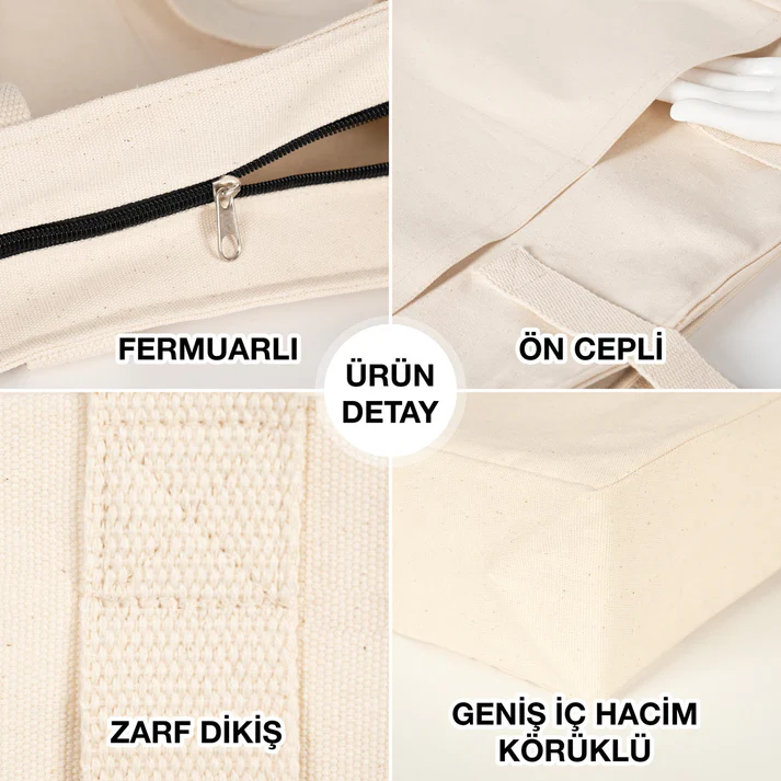 LUX Kanvas Çanta Fermuarlı – Ham Kulp, Ön Cepli, 40x35x10cm