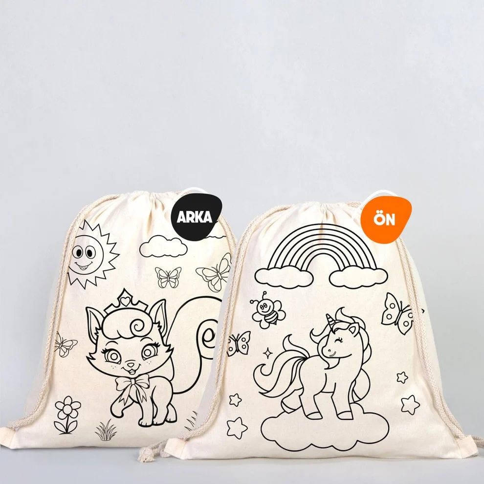 Sınıf Boyama Desenli Set 2 – 25 Adet Boyanabilir Büzgülü Çanta / 4 Adet Keçeli Kalem 12’li