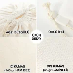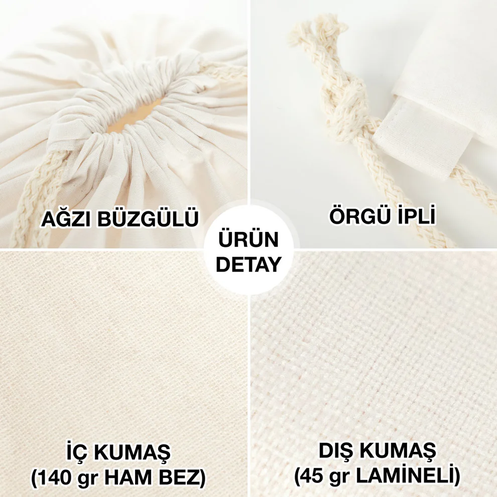 - Lamineli büzgülü çanta boyutları 35×40 cm (ürünler el dikimi olduğundan +/- 1cm ölçülerinde küçük farklılıklar olabilmektedir)