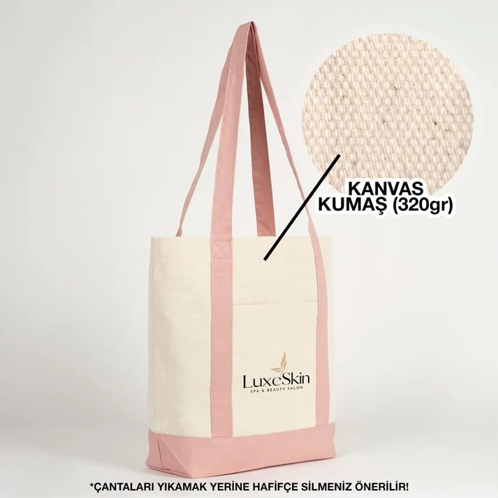 Trend Kanvas Çanta 40x35x12cm – Pembe Renkli Kulp